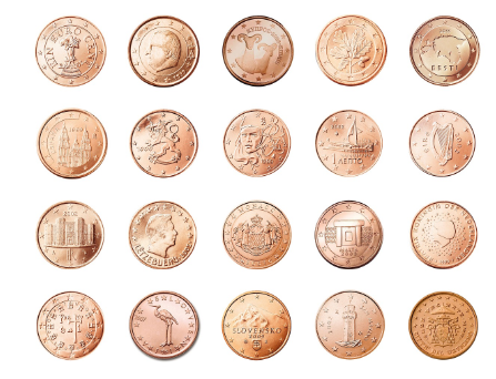 동전에는 그 나라의 언어와 상징물이 새겨져 있습니다.